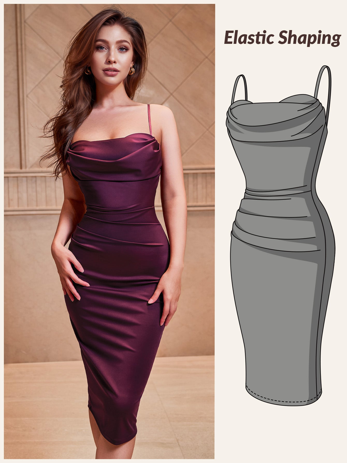 Elegant Bodycon Sleek Draped Neckline Midi Straps Dress